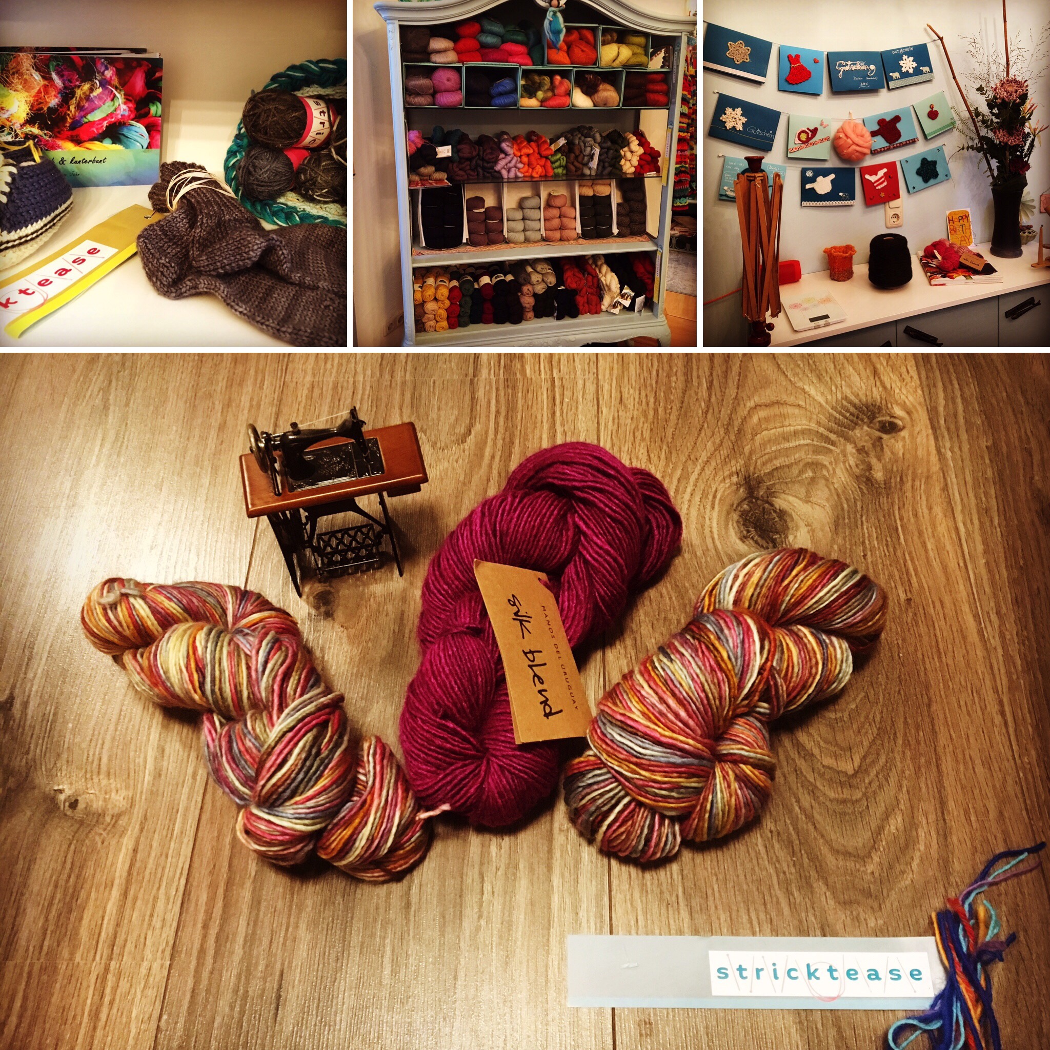 Am Freitag hatte man die Möglichkeit zu einer kleinen Warm-Up Veranstaltung zu gehen. Maike vom Regenbogenschaf und Iris vom Stricktease öffneten für uns ihre Läden. Ich entschied mich für das Stricktease im Frankfurter Nordend. Die beiden Besitzerinnen haben da wirklich einen gemütlichen Laden geschaffen, der viel Wärme und Herzlichkeit ausstrahlt. Sie haben sich auf Garne spezialisiert die mit „Respekt gegenüber Tier, Mensch und Natur produziert“ werden. So wanderten bei netten Gesprächen, Sekt und Knabbereien auch drei bezaubernde Stränge Silk Blend von Manos del Uruguay in meine Einkaufstasche. Hier werde ich gerne wieder zum Wolle kaufen vorbei schauen…