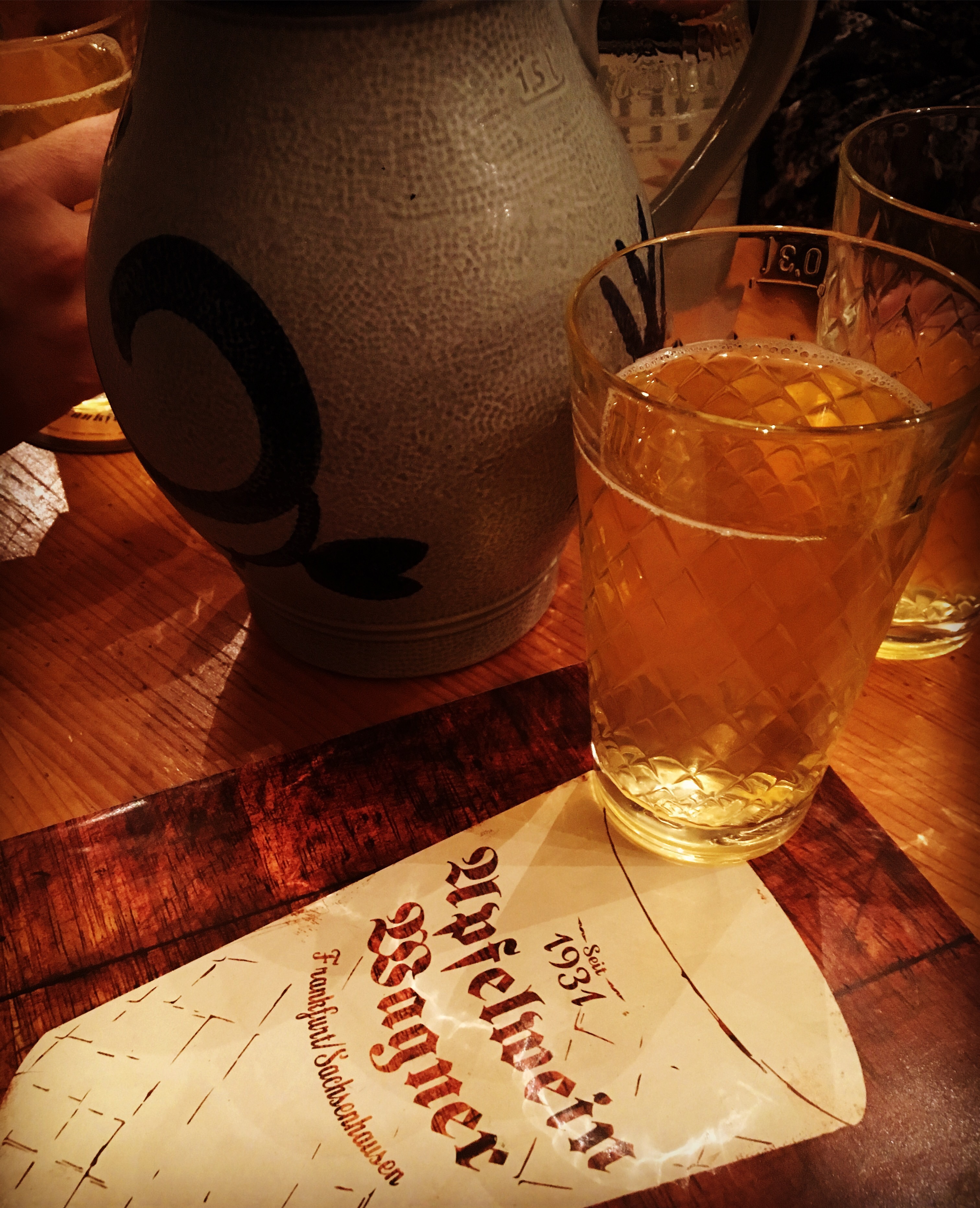 Abends spazierten wir dann gemütlich nach Sachsenhausen, um den Tag gemütlich beim Apfelwein Wagner ausklingen zu lassen. Es gab lang herbeigesehnten Apfelwein und ein super leckeres Frankfurter Schnitzel.