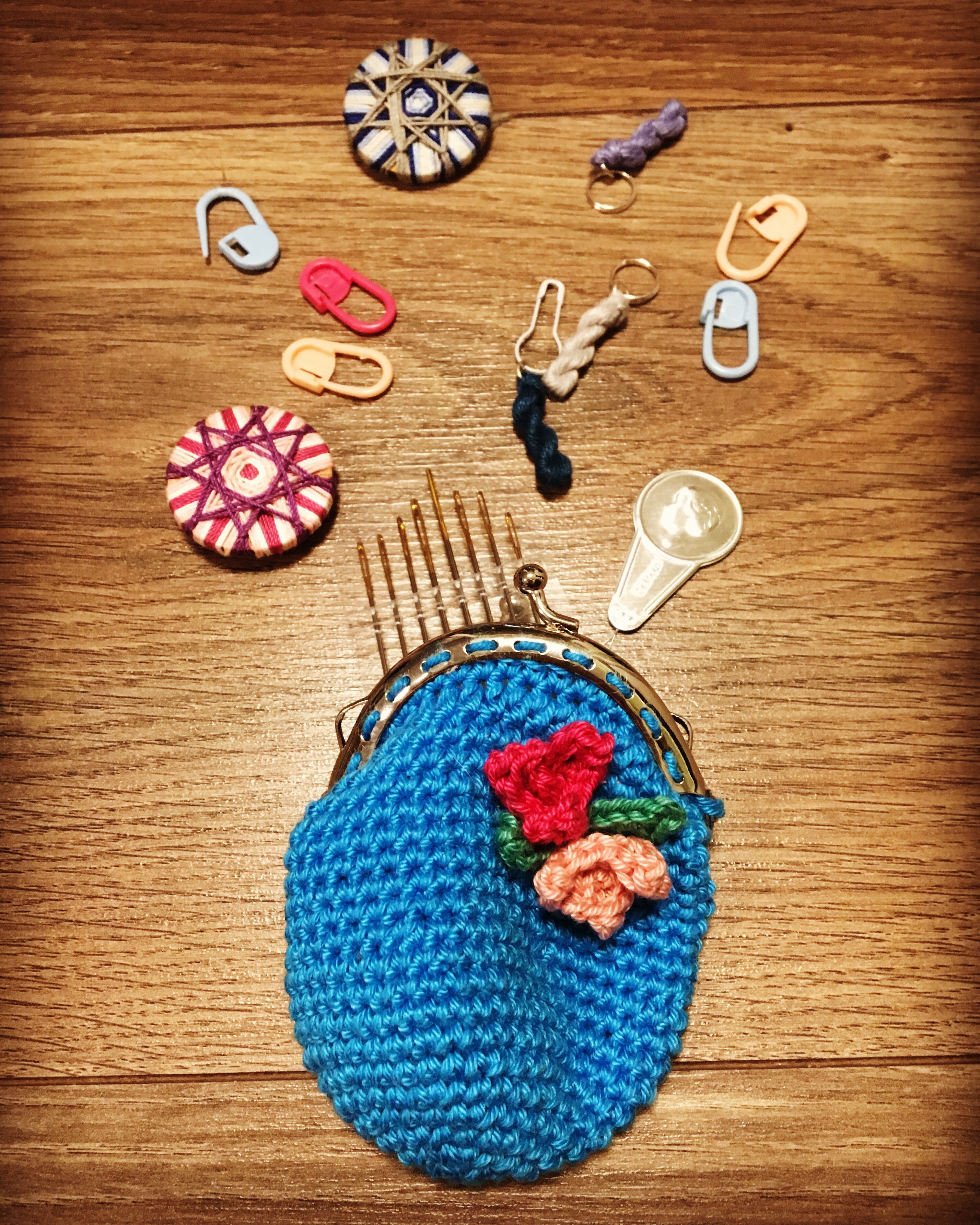 Das kleine Täschlein ist nun gefüllt mit Sticknadeln, Maschenmarkierern, Einfädelhilfe und meinen beiden Sternknöpfen, die noch auf eine Weiterverarbeitung warten. Der perfekte Begleiter für Häkelprojekte unterwegs. Danke an Wollplatz für dieses wunderbare und nützliche Häkelkit.