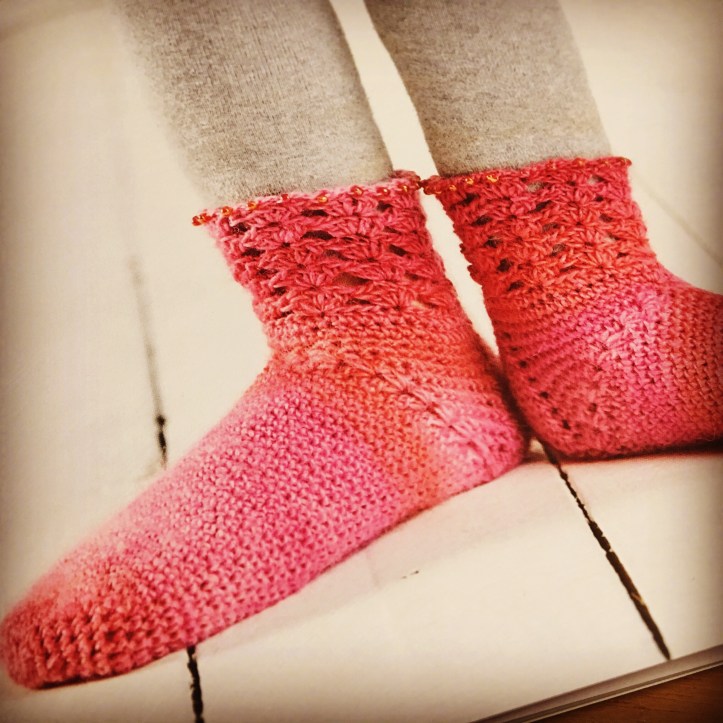 Der einzige Grund, warum ich manchmal bedauere, dass ich nicht besser stricken kann, ist weil ich unwahrscheinlich gerne gestrickte Strümpfe trage. Immer mal wieder probiere ich diverse Häkelsockenanleitungen aus. Bisher habe ich aber leider nicht das richtige finden können, entweder ist das Bündchen nicht elastisch genug, die Passform stimmt nicht, oder ich komme mit der Anleitung nicht zu recht. Irgendwas ist da irgendwie immer gewesen bisher.