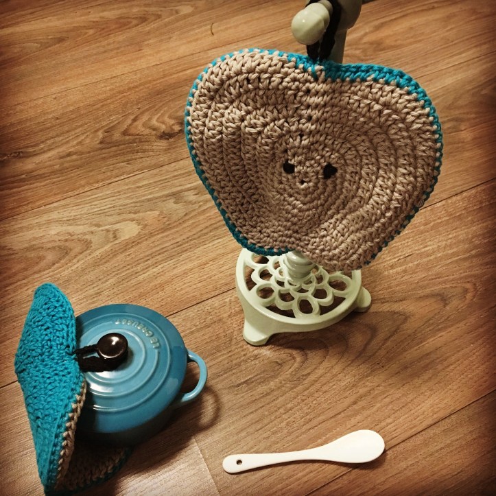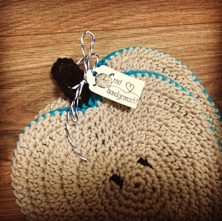 Eines meiner ältesten Ufo ´s ist pünktlich zum letzten Weihnachtsfest fertig geworden. Dass das mit den Topflappen so lange gedauert hat lag nicht daran, dass sie etwa schwierig waren, oder ich keine Lust mehr hatte. Nein ich hatte sie schlicht vergessen. Vor knapp vier Jahren war ich im Prüfungsstress und bin zeitgleich umgezogen. So sind die unfertigen Topflappen leider ausversehen in einer Kiste gelandet, die in der neuen Wohnung im Keller verstaubte. Als ich kurz vor Weihnachten etwas im Keller gesucht hatte, vielen sie mir auf einmal in die Hände. Mir war das ganz schön unangenehm, denn eigentlich sollten sie mal ein Geschenk werden. Wie peinlich ist es denn Bitteschön, ein Geschenk vier Jahre lang zu vergessen?