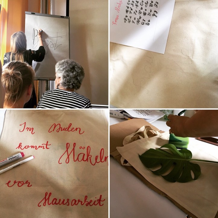 Zuerst habe ich bei Fake Kalligraphie von Victoria`s little secret teilgenommen. Kalligraphie und Handlettering wollte ich schon lange mal ausprobieren. Instagram und Pinterest sind ja voll von wunderschönen Handschriften. Und es macht so viel her. Das Prinzip der Fake Kalligraphie ist recht einfach, allerdings bin ich, wie ihr an meiner bemalten Tasche sehen könnt, vollkommen talentfrei. Ich werde noch sehr viel üben müssen!